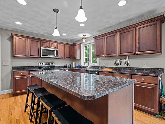Meticulously maintained Colonial situated on 1.4 acres features gleaming hardwoods, granite kitchen with stainless steel appliances & oversized island, dining area with sliders to deck and open to family room with fireplace. Formal dining and living rooms, pantry closet and half bath all on first level. Master bathroom with walk in closet and en suite bathroom, laundry room, full bathroom and 3 additional bedrooms all on second level. Unfinished lower level has mechanicals, high ceilings and walk out to private yard. Garage for 2 cars, central air, basement ready to be finished for extra living space, close to all amenities.