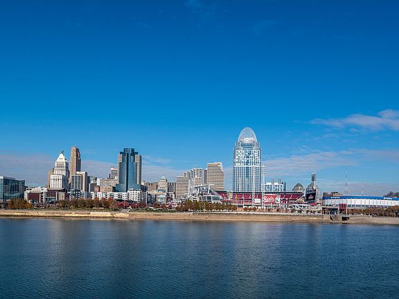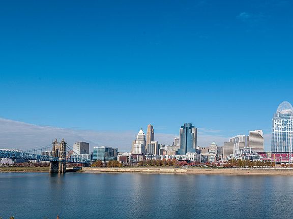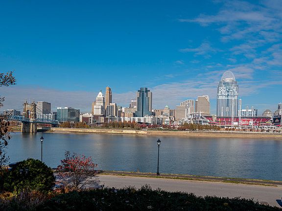 Covington's Licking River Historic District landmark - Truly exceptional unobstructed views of Cincinnati skyline & the Ohio river! Sun-filled 2 story 3400+ sqft condo offers expansive windows - 14' ceilings - two fireplaces (WB & gas) Incredible 25' covered veranda overlooks river & park!