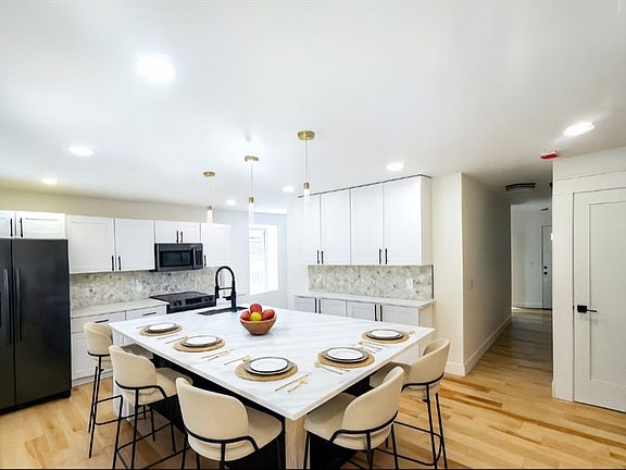 Perched high above the surrounding landscape in Bay State Village, this corner full gut rehab townhouse offers a commanding view. Maple hardwood floors flow seamlessly throughout. The bathrooms feature tile, quartz, and marble finishes that exude modern elegance, the chef’s eat-in kitchen is complete with an oversized island and top tier appliances—all included—making it ideal for entertaining or relaxing in style. Whether enjoyed with morning coffee or evening wine, the elevated patio creates a private retreat framed by skyline and treetops. The second floor features 2 bedrooms and a full bathroom complete with a new combo washer/dryer. Sunlight pours through the skylights in the full bathroom and loft on the third floor. Downstairs, a walkout basement offers endless possibilities. New ductless mini split system. Highly efficient Home. Completely Electric. Energy star certified.No association fees!