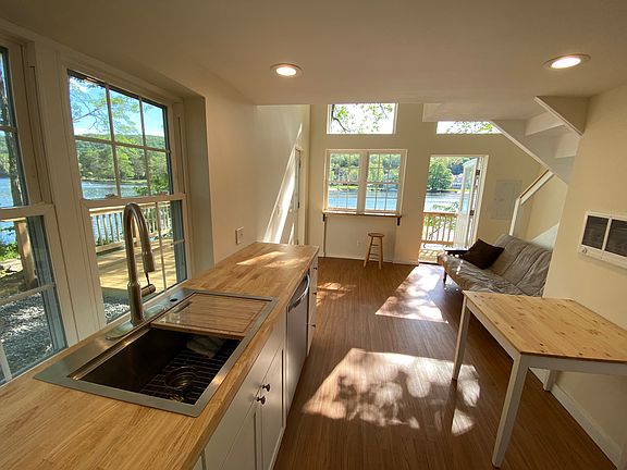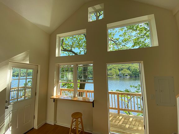 For rent is this stunning 1 bed 1 bath waterfront loft with private wrap around deck! Kitchen features stainless steel appliances and butcher block counters. Family room opens up to 16 foot vaulted ceilings. Upstairs bedroom loft has breathtaking water views through picture windows. Enjoy your private wrap around deck just steps from the water. Waterfront includes sandy beach, swimming area and fire pit. Boat slip space available on dock as well. This is a private stand alone unit with off street driveway parking. Included access to shared washer and dryer on property. Pets are welcome.