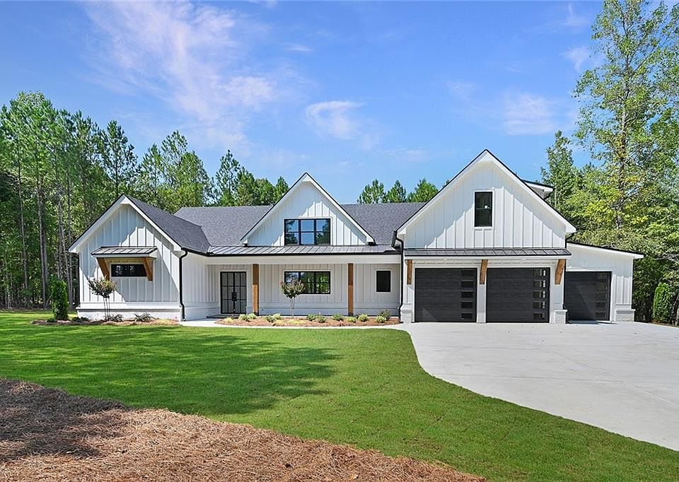 ** READY NOW ** Beautiful NEW CONSTRUCTION modern farmhouse sits beautifully on 2.45 acre homesite in charming 4-lot enclave in A++ Cherokee County location on quiet, picturesque Roper Road. Truly an estate feeling as you drive down your PRIVATE 400'+ driveway and arrive at this stunning home. If you value privacy and quiet (no road noise ever!) then this is for you. Most popular open floor plan with impressive 12 foot ceilings in family/ dining areas, a true chef's kitchen and a seamless blend of indoor and outdoor living spaces. Prepare to be wowed as you enter from the beautiful front door to the main living spaces that feature a wall of glass with oversized sliding doors (16' side x 10' tall) and large windows, leading to a stunning covered outdoor living space with 12 foot ceilings, brick fireplace and outdoor kitchen with grill/ grill hood, sink and under counter bev center. The gourmet kitchen has 60" upper cabinets on 3 sides, hidden walk-in pantry/ scullery with sink and countertop, large center island with quartz counters and lots of natural light. The primary bedroom on the main is the perfect size, and features windows thoughtfully placed above nightstand spaces. The elegant ensuite bath features a large zero-entry shower, his and her water closets and standalone tub, and a huge walk-in closet with custom built-ins and second laundry hook-up. An additional guest room on the main level is located at the opposite side of the primary suite, and features a private bath with oversized shower. Second full size laundry and mud room with built-ins on main floor. Upstairs you'll find 2 additional bedrooms, each with an ensuite bath, a separate TV room and another large home office/ bonus room. Premium backyard is level and private, and perfect for a pool.