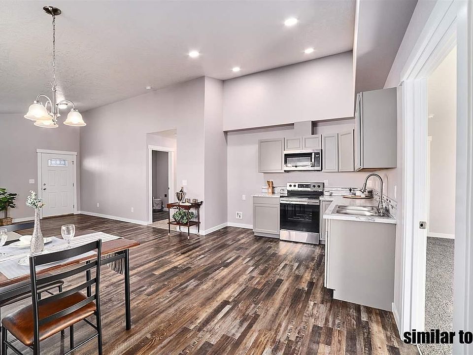 MLS# 266560 Welcome to this stunning new build. This home will offer a magnificent layout along with double vaulted ceilings, Vinyl plank flooring throughout the home along with a neutral elegance look from the charming colors. Custom Cabinets along with quartz countertops will be installed. The home will come with all new Kitchen appliances. Photos are not exact but are similar to the same Model Home. Call your Realtor to request additional information. Buyers to verify all information.