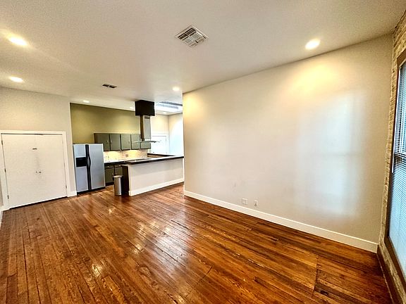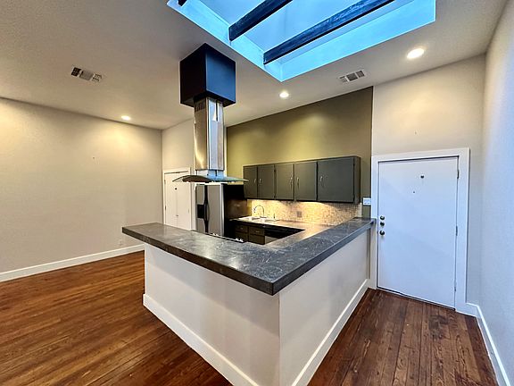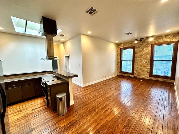 Beautiful contemporary 2/2 bath contemporary loft for rent with lots of natural light, in a very special boutique loft style historic building where industrial finish outs blend with contemporary art work. This building, The Milmo Lofts, is a work of art! A hidden gem! The loft features modern kitchen and bathrooms equipped with stainless steel appliances and dark cabinetry; original long leaf pine floors; 12 foot height ceilings with exposed brick walls and easy and immediate access to your parking spot in a secure gated parking lot. The Milmo Lofts building is centrally located just around the corner from the HEB with easy access to the San Pedro Creek and the River Walk, UTSA downtown campus and a few blocks from IH 10; I 35 and Hwy 281. Individual electric meters. Water, sewer, trash removal, pest control and common areas maintenance fee is charged monthly ($110) in addition to the rent. No smoking inside the building.