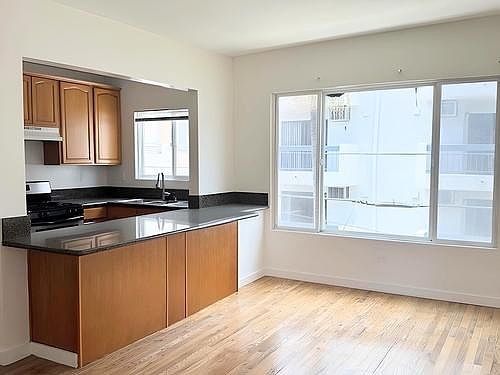 Renovated top floor 1BR, 1 Bth, in a boutique complex, walking distance to Cedar Sinai. This is an end unit with only one shared wall. Hardwood floors throughout, great layout. Open floor plan includes living room and kitchen, big picture windows bring lots of natural light into the space. The bedroom has a wall of closets and an adjacent hall area with enough space for additional storage. Modern bathroom with tub/shower combo. The unit includes a parking space in the carport, secure entrance, and laundry room. NO PETS. Walk to Cedar Sinai, the Beverly Center and all of 3rd St. cafes, boutiques, yoga and more. Short drive to the west side, easy access to major freeways. Call Christina to schedule a tour. ONE MONTH FREE RENT IN THE 13TH MONTH, AT THE CONCLUSION OF A ONE YEAR LEASE.