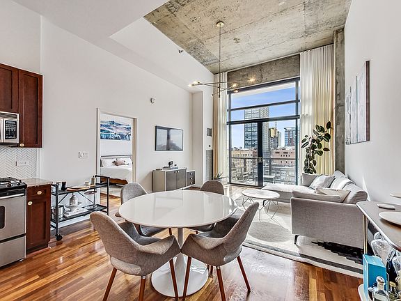 Welcome to the highly sought-after neighborhood of West Loop in the vibrant city of Chicago. Prepare to be amazed by this rare gem - a completely fully furnished, upgraded 1 bedroom, 1 bathroom penthouse boasting breathtaking west-facing views. Step inside and be greeted by soaring 18-foot ceilings, creating a sense of grandeur and spaciousness. The top floor location ensures privacy and tranquility, away from the hustle and bustle of the city and the open floor plan offers a generous living space, with enough room for a dining table or office area. Floor-to-ceiling windows flood the unit with an abundance of natural light, while showcasing beautiful floors throughout. The open kitchen features stainless steel KitchenAid appliances, 42" custom cabinets, thick granite counters, and an island for additional prep space. The spacious master suite is fully enclosed, providing a peaceful retreat at the end of the day. The bathroom is accessible from both the bedroom and hallway, boasting a dual vanity, soaking tub, upgraded lighting, and vanity. Enjoy stunning sunsets from your private West-facing balcony, perfect for unwinding after a long day. Convenience is at its finest with an in-unit washer and dryer, making laundry a breeze. Ample closet space within the home and an additional storage cage in the building ensure that you'll never run out of space. Situated in the heart of West Loop, this location is a true A+! - Enjoy easy access to the Loop, highways, and the University of Illinois at Chicago (UIC). The CTA is just a short walk away, providing convenient transportation options. Immerse yourself in the vibrant culinary scene of Randolph Street and Greektown, with renowned restaurants and cafes at your doorstep. Take advantage of the nearby Skinner Park and Mary Bartelme Park for outdoor activities and relaxation. Grocery shopping is a breeze with Mariano's and Whole Foods within walking distance. This home is in pristine condition and is ready for you to move in and make it your own. Don't miss out on this incredible opportunity to live in one of Chicago's most coveted neighborhoods. Schedule a showing today and experience the best of West Loop living!