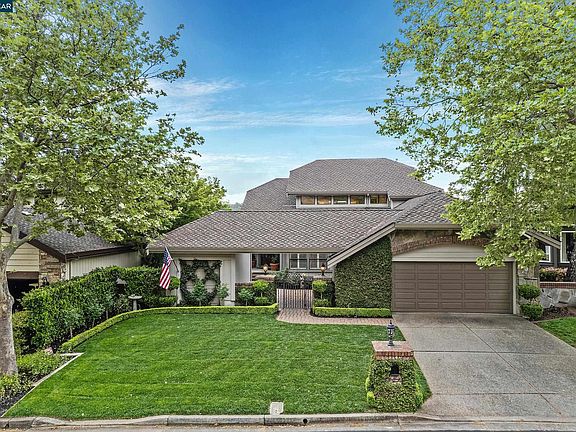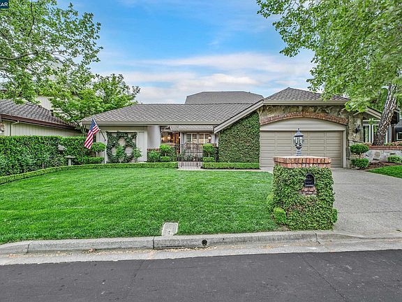 Welcome to this stunning 4-bedroom, 2.5-bathroom home nestled in the hills of desirable Blackhawk Country Club on one of the club's premier cul-de-sac streets. After entering its private courtyard, step through double divided light hardwood doors into this highly customized home; be greeted by soaring ceilings, a spacious formal living room, dining room, and a half bath. The one-of-a-kind custom kitchen boasts an oversized island with built-in cabinets, soft close drawers, and utility sink, utilizing only premium fixtures and finishes. Wall-to-wall illuminated handcrafted cabinetry accompanies top-of-the-line appliances for the inspired chef. The adjacent family room features large glass slider windows offering stunning long views of the valley’s beautiful hillsides. From here, step into the large pavered backyard which offers an oversized gas fireplace and abundant space for outdoor entertaining and relaxation. The newly remodeled main level primary suite provides even more long views of the Blackhawk hillside, three large closets, and atrium. Additionally, the newly remodeled bathroom is complete with an oversized shower, stand-alone tub, bright lighting, and double sinks. Two sizable bedrooms and a large bonus room can be found upstairs. Extraordinary rare find!