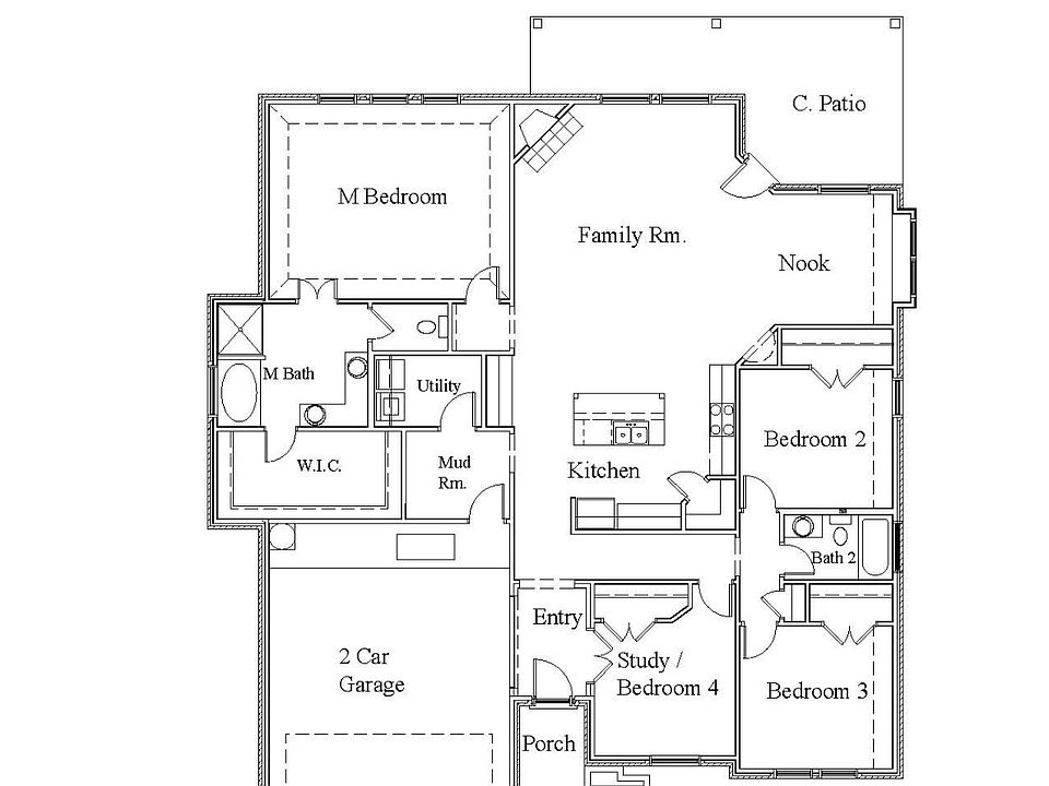 Nestled on a beautiful lot with views, this spacious one-story is perfect for those who want the room to stretch their legs! This home has four beds, two full baths with just under 2200 sq ft. Natural light fills the beautiful formal study at the front of the home. An enormous living room and huge island offer more than enough space for family functions, entertaining, and more. Enjoy a kitchen with plenty of countertop space with upgraded granite and stunning custom cabinets. Take in the quiet evenings on your covered back porch overlooking your large yard. Relax in the massive master suite, complete with a large master bathroom. Stonework accents add the perfect amount of curb appeal, ensuring you'll want to call this one home!