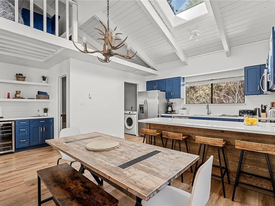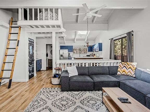 Newly renovated 3-bed 2.5 bath condo. with one of the largest wraparound decks in the complex, complete with a fire table and stairs down to an open area. Perfect for your furry friends. Lots of natural light pours into the unit through two skylights and extra windows with it being a corner unit. Enjoy the spacious open-concept living / dining & kitchen areas, fully equipped with Tahoe Blue shaker cabinets and quartzite counter tops. Dining table seats 6, and 4 bar stools are at the kitchen counter. Plenty of room to play board games and cards while cooking, and enjoy summer nights in-front of the fire. There is a built in wet bar for all of your libations :) Fully equipped with games, a gas fireplace, flat screen tv, and a bonus loft furnished with another flatscreen t.v. and futon. This 3-bedroom, 2.5 bath retreat offers plenty of room for families and friends to relax after a day out in nature.