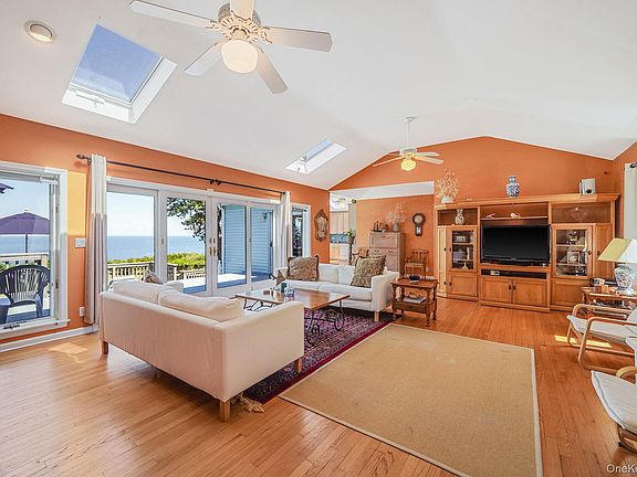 Million-dollar views await at this rare Sound Beach location, featuring TWO adjacent lots totaling 0.77 acres with unobstructed views of the Long Island Sound and Connecticut shoreline. This 3-bedroom, 3-bath raised ranch includes a sun-filled living room with a wood-burning fireplace, hardwood floors, Andersen windows, and sliding glass doors opening to a spacious tri-level deck. The eat-in kitchen and dining area showcase sweeping water views, while vaulted ceilings and skylights fill the home with natural light. Additional highlights include a walk-out basement with full bath and versatile living space, a 1-car garage, and beautifully landscaped park-like grounds that create your own private oasis. Owners have the option to join the Sound Beach Property Owners Association, providing exclusive access to a secluded private beach.