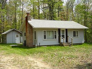 CABIN WITH FIREPLACE - mio area, 2 bedroom, 1 bath, brick Fireplace, knotty pine interior, NG Forced air heat, newer roof, 40x60 pole barn on 1.5 Acres close to the mio pond $ 48,000 A-2354