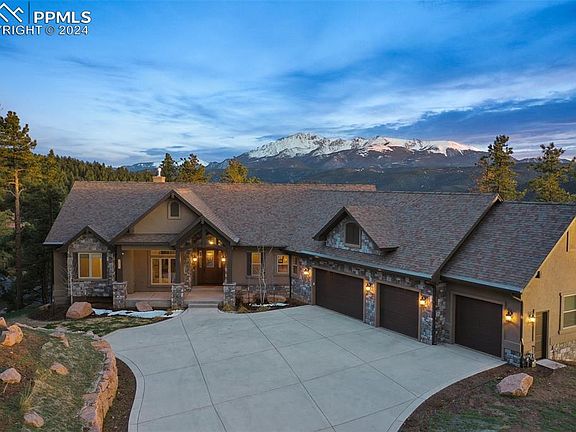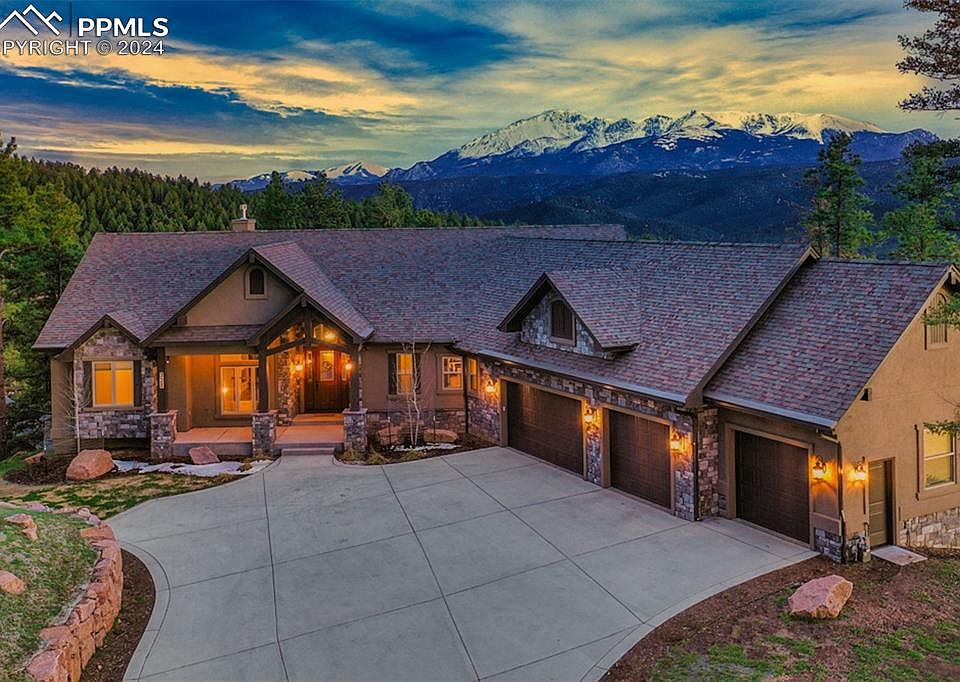 Nestled amidst the majestic landscapes of Woodland Park, where the mighty Pikes Peak stands as a sentinel, the Colonel's Cottage exudes warmth, luxury, and charm at every turn. Tucked away on a quiet cul-de-sac and overlooking the pristine expanse of the National Forest, privacy becomes your faithful companion, embracing you in a cocoon of serenity and seclusion. As you step through the inviting threshold, the foyer embraces you with its grandeur. Gleaming Ceramic tile with the hardwood floor look whisper tales of timeless elegance, guiding your gaze towards the heart of the home—the Great room. Here, a stone gas fireplace stands as a beacon of comfort, casting a warm glow that dances across the walls, inviting you to unwind and create memories with loved ones. The kitchen, a culinary masterpiece, beckons with its granite countertops and custom Alder cabinets, while the farmhouse sink basks in the gentle caress of natural light pouring in through expansive windows. Space where laughter mingles with the aroma of home-cooked meals, where stories are shared over glasses of wine, and where culinary dreams take flight. Retreat to the master suite, a sanctuary of serenity and indulgence, where a lavish 5-piece bath awaits, complete with a soaking tub that promises to melt away the stresses of the day. As you step into the walk-in closet, adorned with custom shelving, you're enveloped in a sense of tranquility, knowing that every comfort has been meticulously considered. Venture downstairs to discover a haven of relaxation in the family room, where a second fireplace beckons with its comforting embrace, and a wet bar stands ready to quench your thirst for hospitality. Two additional bedrooms offer respite for guests or loved ones, each with its own unique charm and character. Outside, the covered patio invites you to linger beneath the star-studded sky, while the wooded surroundings whisper secrets of nature's beauty. The best views of Pikes Peak in all of Woodland Park .