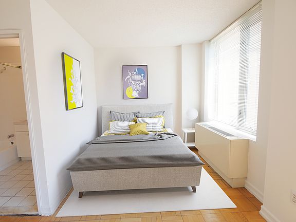 Large Queen Sized Alcove Studio with Closetsand a Spacious Living Room with floor to ceiling windowsSeparate Kitchen With Stainless Steel appliances , Storage Scattered Throughout. Central Heat And Air. Hardwood Floors
