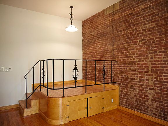 Exposed brick wallsTon of natural lightOld world charmQuiet tree-lined streetSteps from riverside parkFull separate kitchenGlistening hardwood floors