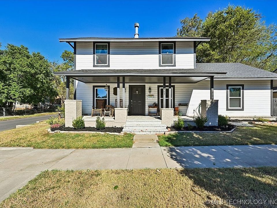 This charming 110-year-old home on a corner lot exudes character and has been beautifully updated. It features 3 bedrooms and 3 full baths with recent remodeling that revitalizes its historic charm. The open-concept layout connects the kitchen, dining, and living areas, with the kitchen boasting quartz countertops, a large island with bar seating, and a walk-in pantry. The primary suite offers a cozy fireplace, an expanded bathroom with double vanities and dual shower heads, and a massive walk-in closet. Additionally, there's a versatile sunroom/studio/flex space currently used as an art studio, not included in the total square footage. All major systems, including HVAC, hot water heater, roof, and plumbing, are newer. Stainless steel appliances and newer windows add modern convenience. The seller is offering a $2,000 credit at closing for new carpeting.