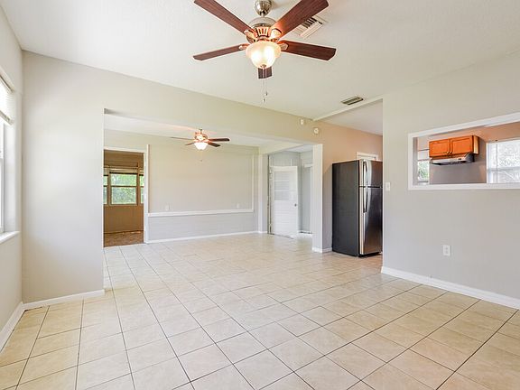 Find this three-bedroom, two-bathroom, 1,264-square-foot rental home in Eustis. Enter the living room, and cool off beneath its ceiling fan. Cooks will appreciate the eat-in kitchen that has a pantry for shelf-stable items, a double sink with a gooseneck faucet for easier meal prep and clean-up, a pass-through window, stainless steel appliances, beautiful green counters, and lots of cabinet space. The dining room also sports a ceiling fan light, and double doors in a hallway just past it open to the backyard. There you'll find a detached building for storage. You'll also appreciate the main bedroom's mirrored closet doors and the natural light that comes through its many windows. Schedule a tour of this rental home today.