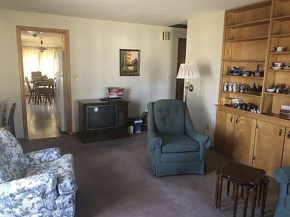 Well built 2 bedroom home in a great school system. Double lot. Nice sized living room with built-ins. Pocket door between living room and kitchen. Galley kitchen with lots of cupboards. Cupboards have pull out doors. Dining area at end of Kitchen. Pocket door between kitchen and large utility room with washer, dryer and house mechanics. Plenty of room for a freezer if you like. Nice sized bedrooms. Floors are hardwood under the carpets if you don't want the carpets. Low utility cost. New Furnace in 2014. New roof 2008.Lots of storage. 1 car detached garage.