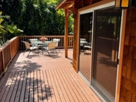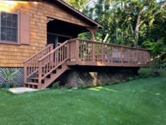 This offering must be seen to appreciate the attention to detail with this renovated two (2) bedroom one and half bath (1.5) piece of Haiku paradise! A mere block away from Pauwela Cannery this hidden oasis includes the following features...new plugs and dimmers switches throughout the house, new track lighting, six (6) new double pane windows, three (3) Hunter fans with remotes, new interior paint, new brush nickel doorknobs, solid core interior doors, granite counter tops in kitchen, new full extension soft close cabinetry, cedar accent walls and trim, laminate plank waterproof vinyl flooring, new Samsung stainless stove, dishwasher, refrigerator suite, insinkerator disposal, Whirlpool washer and dryer, propane on-demand water heater, stove, clothes dryer, vented roof turbine, exterior shingles siding, generous exterior decks, railings, trim newly stained, perimeter wood fencing, citrus and mature avocado trees, Presidential 3 tab roofing installed w/ 30 year warranty, termite tented 1.5 years ago, insulation within all interior and exterior walls and recently surveyed in preparation for sale. Renovation converted bedroom to full bath and improvements may not have conformed with County permit process. The property and its improvements are being sold in "AS IS" condition Contact your realtor to set up a showing with (24) hour notice, please (Cedar shingle siding, 835 (approx.) sq. ft. exterior measurement, over 200 sq. ft. exterior built-in storage, more than 1,000 sq. ft. decking and more...)!