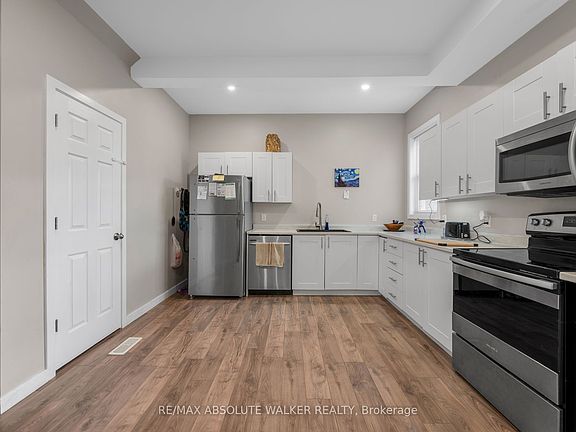 Welcome to 321 Wood St & 693 George St - a fully renovated duplex offering excellent cash flow and a cap rate approaching 7%. Perfect for investors seeking a turnkey property with modern updates and reliable income.321 Wood St features 3 bedrooms plus a loft, 1.5 baths, and exclusive use of the large fenced backyard - ideal for families. The home offers modern comfort with a dedicated 2020 furnace, 2020 AC, and 2021 gas hot water tank.693 George St is a bright and spacious 2-bedroom, 1-bath unit with impressive 9-ft ceilings, creating a sense of openness and charm. Recent mechanical updates include a 2025 furnace, 2020AC, and 2023 electric hot water tank.Both units benefit from a complete property overhaul completed between 2019-2020, including all-new plumbing, wiring, drywall, pot lights, flooring, kitchens, and bathrooms - ensuring peace of mind for years to come. Situated in the heart of Prescott, this property is steps from amenities, schools, and the river front. With strong rental potential and low maintenance requirements, this duplex is an exceptional opportunity to add a high-performing asset to your portfolio.