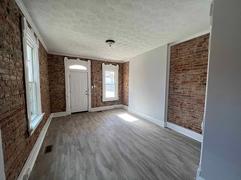 Located within minutes of Downtown Dayton is this beautiful 2 bedroom duplex with exposed brick, granite countertops, high efficient furnace with new windows throughout. New ceramic tile in the kitchen and new laminate flooring throughout the dining and living room. Carpeted stairs and bedrooms make for cozy bedrooms with plenty of natural light spilling in.