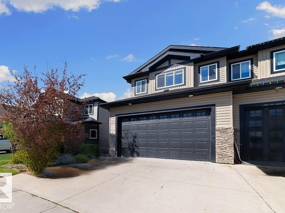 QUICK POSSESSION, MOVE-IN READY, beautifully designed half-duplex backing onto a WALKING TRAIL in the sought-after community of Montrose Estates in Beaumont! BRAND new CARPET and PAINT. The main floor has a spacious open-concept layout, featuring a large kitchen with stainless steel appliances, perfect for cooking and entertaining, a cozy fireplace in the living area, and a powder room. Upstairs, you’ll find a dedicated laundry area, a bright bonus room, and three well-sized bedrooms including a primary suite with a 4-piece ensuite and walk-in closet. A shared 4-piece bathroom completes the upper level. Good sized deck, BIG backyard, double attached garage and a SEPARATE side entrance to the basement. Enjoy being minutes away from the playground and close to schools, dining, and essential amenities. This home offers comfort and convenience in a peaceful, family-friendly neighborhood. A must see!