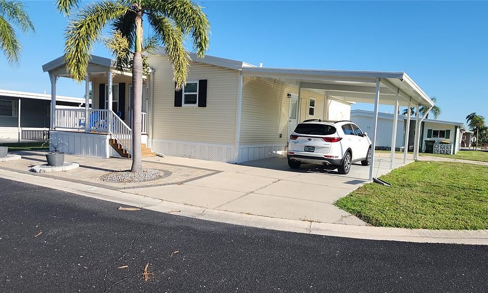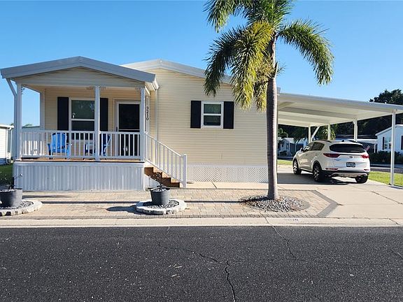 Coastal Comfort with Serene Lake Views in Sarasota’s Resident-Owned 55+ Community - NO LOT LEASE! This beautifully maintained 2012 Palm Harbor 3-bedroom, 2-bathroom home sits on a desirable corner lot with a front-facing lake view, offering the perfect blend of comfort, style, and peace of mind with numerous recent updates. Enjoy tranquil mornings and relaxing evenings from the spacious raised front deck, perfectly positioned to take in the serene lake views. Located near the resident-only entrance and clubhouse with pool amenities, this home also features a semi-circle driveway with dual access points, providing convenient drive-through access, ample parking, and a covered carport for two vehicles. Step inside to a bright, open-concept living area highlighted by drywall and tray ceilings, creating an inviting sense of space. The luxurious kitchen showcases recessed lighting, tile-accent stove hood, tall cabinetry, a stainless-steel LG side-by-side refrigerator with bottom freezer, and GE range and built-in microwave. An indoor laundry area with full-size Frigidaire front-loading washer and dryer adds everyday convenience. The large primary suite features a king-size layout, walk-in closet, and a private ensuite bath featuring dual sinks and a tile-surround shower. The second bedroom comfortably fits a queen suite with walk-in closet, and the third bedroom offers flexibility for guests, hobbies, or an office. Thoughtful recent updates include: Elastomeric roof over (2022), Impact windows and exterior door (2022), HVAC (2020), Interior paint (2021–2022), Sewer line (2021), New faucets (2022), Perimeter pavers (2021), Gutters (2024), vapor barrier (2024), and carpet cleaned and stretched (2024). An attached shed provides convenient additional storage. Oakwood Manor is a vibrant, gated 55+ community spanning 90 acres, offering a wide range of amenities for just $190/month. Maintenance fee includes lawn care, cable TV, community pool, common ground upkeep, escrow reserves, plus more. The spacious clubhouse features a fitness room with pool table, library, pool table, commercial kitchen, event stage, and dance floor. Outdoors you’ll find a heated community pool with handicap ramp, hot tub, shuffleboard, putt-putt, shaded picnic areas, and more. Perfectly located next to the Legacy Trail and city-managed pickleball courts, just under 3 miles to downtown Sarasota and 6.5 miles to the sandy shores of Lido Key Beach, with shopping and dining close by. Please note: Oakwood Manor does not permit pets or motorcycles. Don’t miss your chance to enjoy comfortable living in one of Sarasota’s most sought-after communities! Tenant Occupied 11/3/25 - 2/1/26.
