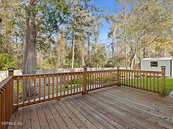 Welcome to this BEAUTIFUL abode situated in the DESIRABLE gated community of Villages of Fireside, which features a community boardwalk & access to Black Creek for fishing and fun. NO CDD fees. From the gorgeous views out of every window front to back, the light & bright open floorplan, to the park-like curb appeal, updates galore & outside oasis, you will not be able to choose your favorite feature of this immaculate home. The high ceilings, gorgeous wooded views, and beautiful fireplace makes the large family room the place to be. This home is perfect for entertaining with doors leading out to the fantastic deck overlooking the backyard. Enjoy morning coffee or evening dinner as you take in nature and the beautiful birds that may come by to greet you.