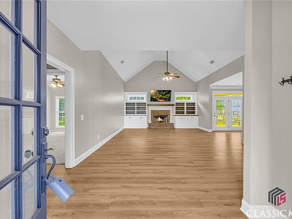 Beautiful 3-bedroom, 2.5-bath brick home featuring an inviting open floor plan and thoughtful layout. The spacious foyer impresses with soaring 18-foot ceilings and a view to the brick fireplace flanked with built-in bookcases and seamlessly flowing into the expansive eat-in kitchen. You also have access to the covered patio and backyard through lovely french doors with transom window off the kitchen —perfect for entertaining. Just off the kitchen, you'll find a generously sized laundry room with ample storage space and functionality. The large master suite includes a walk-in closet and a luxurious en-suite bathroom. On the opposite end of the home, two additional bedrooms share a convenient Jack and Jill bathroom. The backyard is fenced and this property also boasts a 3-car garage offering plenty of space for vehicles and extra gear. Need more room? You'll love the fully finished 30x36 shop featuring three garage doors, 110 and 220 wiring, and climate control—ideal for hobbies, storage, or additional parking.