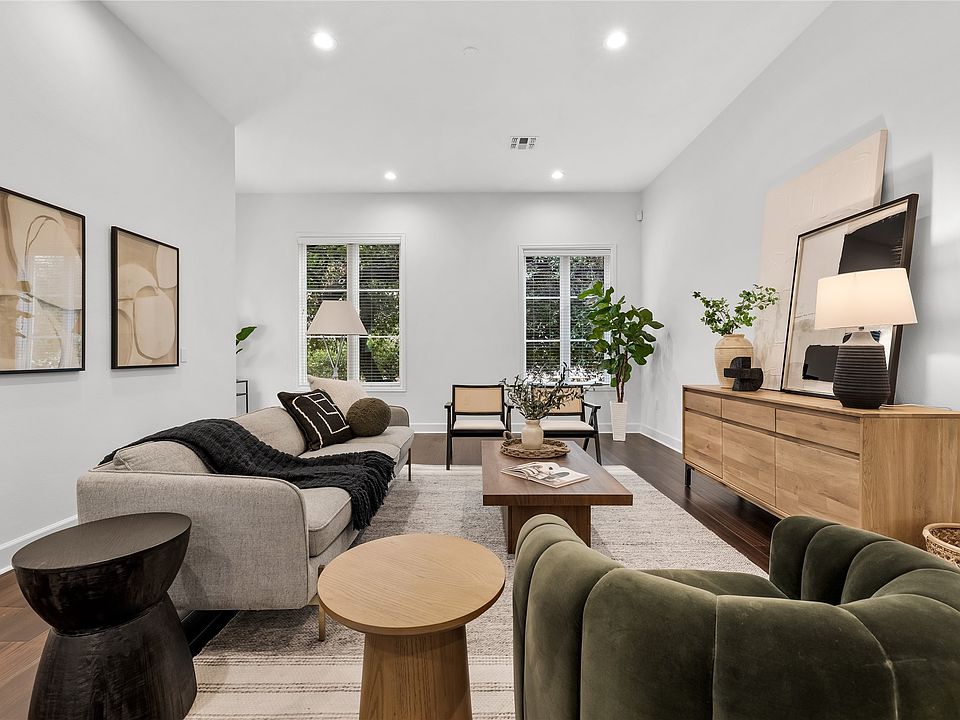 Nestled in the vibrant heart of Uptown, just steps away from the scenic Katy Trail, this exquisite two-bedroom, brownstone-inspired home at The Vine, offers a perfect blend of classic charm and modern luxury. Newly refinished, the residence boasts custom flooring and lighting throughout and a designer-curated color palette, enhancing its sophisticated ambiance. The redesigned primary suite is a serene retreat, complemented by a newly refinished bath with large soaking tub and separate frameless glass shower. An open floorplan reveals soaring ceiling heights, creating an airy and inviting atmosphere. The eat-in kitchen, with its generous storage and central island, is a culinary enthusiast's dream, ideal for both intimate dinners and grand entertaining. A private study on the owner's floor provides a quiet sanctuary for work or relaxation. The crowning jewel is the roof terrace, offering breathtaking treetop views, perfect for hosting guests or unwinding under the stars. With shopping, dining, and entertainment just steps away, this home promises an unparalleled lifestyle in a prime location.