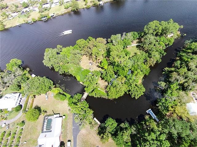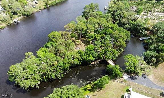 H.9550 - Private island with 2 adjacent lots on the navigable Caloosahatchee River only 25 miles east of Fort Myers. This riverfront location is on the Okeechobee Waterway which stretches from The Gulf of Mexico on the west to the Atlantic Ocean on the east and Lake Okeechobee in between. An idyllic setting with 2 docks for boating, fishing, horseback riding, and other recreation. The single family home on the island lot is accessed via a quaint, steel-framed bridge with planks. The home is in the process of renovation and is ideal for use as a lodge for entertainment and recreation, or as a studio with large solarium room. An attached, over-sized 4 car garage with high doors provides storage and workspace for your cars, trucks, boats and other hobbies. The 2 lots directly off of Fort Denaud Road are undeveloped and ready for construction. This is a very unique opportunity to develop your private island retreat. Watch the fish jumping, or just hear yourself think. This getaway in paradise includes one of only 3 island lots in the area! But, all 3 lots are included at this price! Don't let this rare opportunity slip slide away.