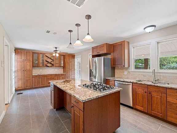 An oasis in town! Relax on the covered deck after a long day, or stay inside and enjoy the comfort of an earlier time when hardwood floors and wood burning fireplaces were a way of life. Although the garage is detached, it has covered access to the home. You'll enjoy the recently updated kitchen with a built-in gas cooktop, oven & microwave, granite counters, and a view of the covered deck/porch and into the back yard. Two living spaces allow you to be creative in how you entertain guests, and can help provide that separation and privacy if you want some quite time to yourself. Large, mature trees provide wonderful shade and cooling in the front and back yards. Come see what life can be!