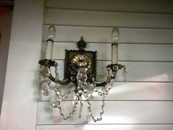 Long leaf pine walls and a cypress ceiling beam have been left natural in the dining area. There is a large antique, French oak sideboard with stain glass upper doors which serves as a pantry.