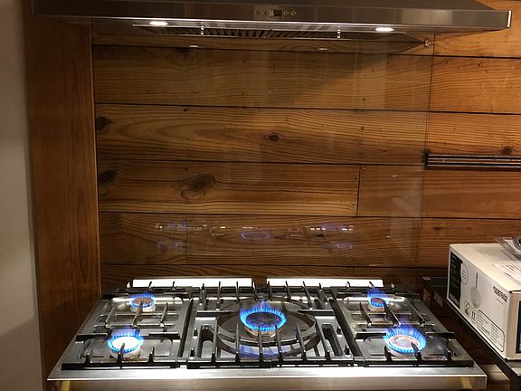 The Cooking range is a 42" Lacanche Cluny selected not only because of its charming antique French look but because it is truly a workhorse. These Lacanche ranges are handmade and highly prized. This one has 5 natural gas burners - the center burner is an 18000 BTU wok ring. Dual ovens -one gas, one electric. Learn more about them at FrenchRanges com