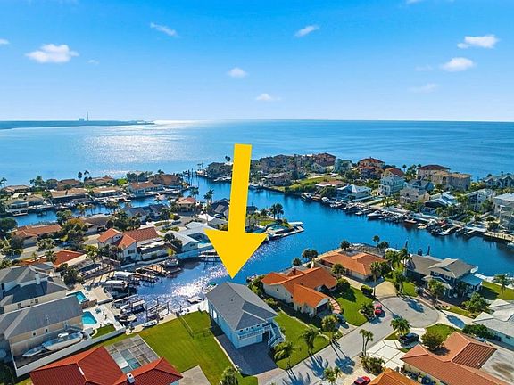 Discover coastal living at its finest in this beautifully updated 3 bedroom, 2 bath stilt, home with pool located on one of the best Deep-Water canals in Gulf Harbors just 5 minutes to the Open Gulf.......... Elevated for peace of mind, this home offers exceptional protection from water intrusion while delivering stunning water views and luxurious outdoor living. Enjoy a two-story rear deck with amazing sunset views overlooking the Water, Canal, and Pool. The expansive covered outdoor lounge features a TV and kitchen—perfect for entertaining year-round. Boaters will love the 10,000 lb boat lift, Deep Water Gulf Access, and being just 5 minutes to the Open Gulf. Inside, the home features an open-concept layout, a cozy fireplace, extra full bath in the garage, It may be possible to fit more than 3 cars in the garage. impact-rated windows (2020), and a long list of major updates for effortless living. Gulf Harbors residents also enjoy access to a Private Beach, community park, and the true Florida waterfront lifestyle. Gulf Harbors is known for it's boat parades, golf cart parades, concerts at the beach and Civic Center and so much more fun Social Activities that Gulf Harbors provides....... Major Upgrades Include: • Plumbing updated (2019) • New roof (2020) • Air conditioner (2020) • New front & back maintenance-free decks (2020) • Flood vents for improved insurance rates (2020) • Exterior paint (2020) • Spray-foam patio insulation & finished patio ceiling (2021) • New boat lift (2021) • Pool converted to saltwater (2020) • New impact hurricane windows & sliders (2020) • Sea wall updated (2019) • Added attic insulation (2022) • Updated fireplace (2022) • New floating dock (2021) • Garage ceiling sheetrock (2022) • New flooring (2022) • Popcorn ceiling removed (2022) • Walls & ceilings repaired, retextured, and new interior paint (2022) • Extended driveway + 30-amp service (2021) • Water heater (2020) This home is the perfect blend of waterfront luxury, peace of mind, and modern upgrades—all in one of the most desirable boating communities on the Gulf Coast. AWESOME AFORDABILITY......My seller only pays $653/yr for Flood Insurance NFIP Policy that is TRANSFERABLE TO THE NEW BUYER and Only $2558 / yr for Home Owners Insurance. There is a VA assumable loan at 2.75% that could be assumable with a large down payment. Ask listing agent for details....