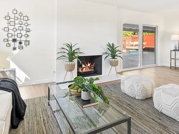This beautifully renovated home in University City boasts a phenomenal layout, situated on a corner lot. It features a range of amenities, including owned solar panels, pool, spa, sunbathing deck, and 2 gas fireplaces. The roof was completely redone in 2018, brand new A/C, and the sewer line main has been redone. On the first floor, you'll find a spacious bedroom with a full bath, while both the living room and family room offer cozy gas fireplaces tiled to the ceiling. The open concept kitchen showcases white shaker cabinets, marbled quartz countertops, brand-new appliances, and a stylish tile backsplash that flows seamlessly into the dining room. The primary suite is a true retreat, complete with a private deck, his and hers closets, white slow-close vanity with double sink, and modern brushed bronze fixtures. Upstairs, there are three additional sizable bedrooms and full bathroom, also with his and her sinks. Located in a quiet neighborhood, this home is within walking distance to Standley Elementary, and offers quick freeway access.