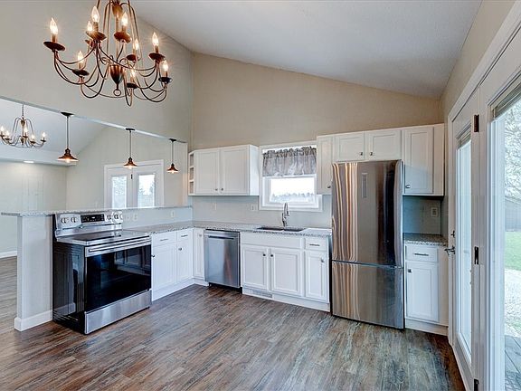 Welcome to your Sun Valley Lake home with beautiful views of this stunning spring fed private lake with great fishing, a beach and boat docks/ramp just a block away! This beautiful home sits up high overlooking the lake, large windows on the lakeside, spacious living room & kitchen w/vaulted ceilings, nice dining area, two great sized bedrooms and roomy full bathroom w/laundry. This home has had Many recent updates/upgrades including New Roof, leaf guard Gutters, Siding, Furnace & A/C, Appliances/Washer & Dryer, Flooring, Paint, Fixtures and More. You will enjoy sitting on the front deck overlooking the lake, flowering trees, beautiful sunrises & sunsets; cooking on the grille while entertaining guests or just relaxing. Pull your car into the brand New two car garage and here you are at your Home Sweet Lake Home Property! Do not pass up your chance to come have a look at this coveted lake home today. Call now for your showing.