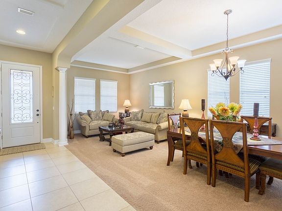 Reduced & Priced to Sell! Welcome Home and Prepare to be Dazzled, as You Enter this Executive Home. It Shows like a Model with Many Upgrades & Custom Details. along with an Open Floor Plan, Coffered & Volume Ceilings. Home Features: A Formal Living Room and Dining Room. Gourmet Kitchen with Stainless Steel Appliances which include Refrigerator, Double Ovens, Microwave, Smooth-Top Range, PrettyCabinetry with Crown Molding Finishing, Beautiful Granite Countertops, Decorative Backsplash, Granite Butler?s Bar, Walk-in Pantry, Kitchen Nook, and Great Room. The Great Room and Kitchen Overlook the Lanai and peaceful views of the Pond, Conservation and No Rear Neighbors. Lanai is complete with Brick Pavers, Summer-Kitchen and Flat Screen TV too. If desired, there is plenty of room for a pool orresidence may enjoy the community pool and the amenities. There are 5 Bedrooms with almost each having their Own Bathroom with Granite Vanity Sinks. There is 1 Bedroom Downstairs with access to a Full Bath. The Masters Suite is upstairs with an expansive sitting area & screened in Balcony overlooking the serene Pond & Conservation Views. Master Bathroom has Dual Sinks with Granite Vanity, Garden Tub& Walk-in Shower. There is also a huge loft that functions, as a bonus room or whatever your need may be. In Addition, Home has an inside Utility Room with Granite Counters, Sink & Lots of Cabinets & Storage Space. Seller Will Pay 2% of the Sales Price Towards Buyers Closing Costs. Hurry Don't Delay Schedule to See it Today!