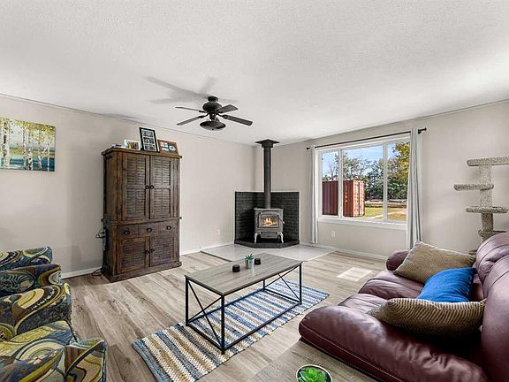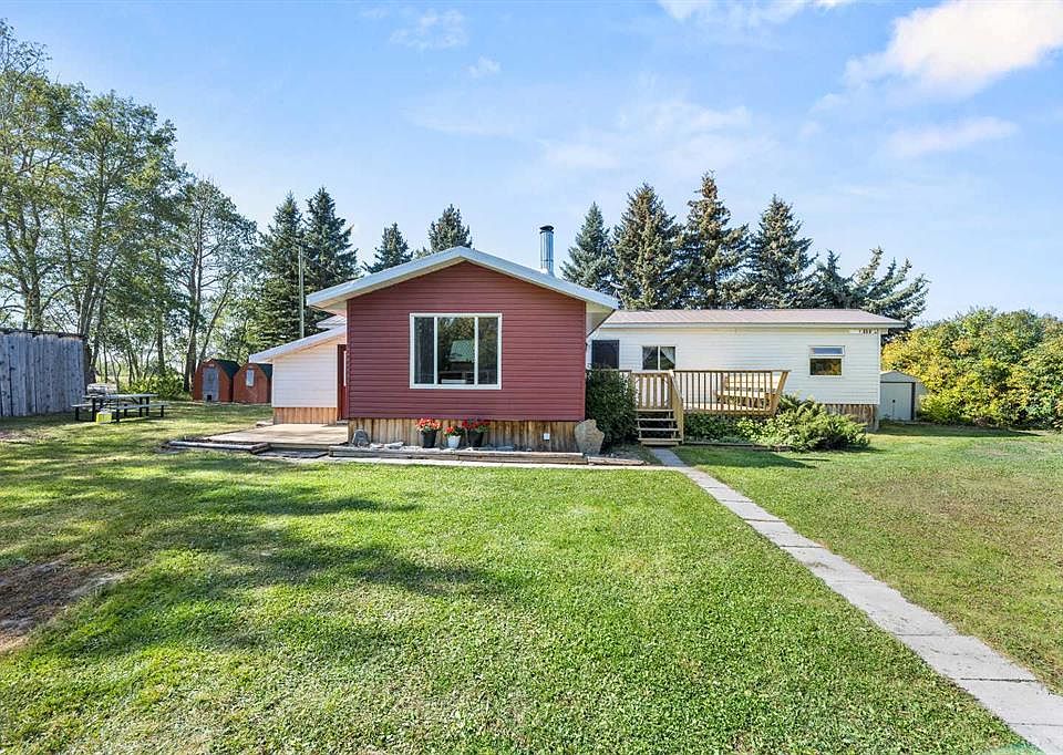This 6.72-acre property is an excellent opportunity for those looking to enter acreage living without sacrificing convenience. The home offers over 1,300 sq. ft. of functional living space and has recently seen many updates, including fresh landscaping, new vinyl flooring, new appliances, fresh paint, and treated decks. The layout includes a bright east-facing living room with a wood-burning stove, an open kitchen and dining area with room for a large table or future island, three bedrooms, a full 4-piece bathroom, and a dedicated laundry room. Outdoor living is well designed with two east-facing front decks to enjoy the morning sun and a large west-facing rear deck to take in mountain views and sunsets. The land is fenced and ready for animals, with a stock waterer, hydrant, pens, and shelters already set up (metal panels excluded). Outbuildings include a wired bunkhouse/cabin with loft, multiple chicken coups, woodshed, and a barn with stalls and tack storage. Additional upgrades provide peace of mind, including a newer metal roof, upgraded plumbing and electrical, and updated well and septic systems. Located just 15 minutes to Sundre, 20 minutes to Olds or Didsbury, and 45 minutes to Cochrane, this property offers the perfect balance of country living and access to amenities. This home comes with a pre-listing home inspection available with a successful offer.