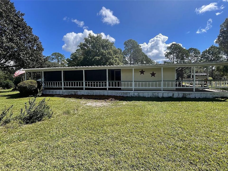 QUIET IN THE COUNTRY! Bring the horses, this property is turkey ready for the pet friendly. Fenced and Cross-Fenced. Just look at this wrap-around porch to gaze over any of the 3 paddocks. 4-stall 15x23 barn with fans, feed and hay storage area. Run-In 2 stall 12x10's, one Run-In 9x12. All with water & Electric. Paddocks connect by gates. Larger equipment and storage barn 22x34, with attached 19x21 Room that would make an extra office or Mother-in-Law suite with little finishing to do. Newer storage shed used as an extra TV and "get together" playroom. New Solar Gate for easy entry. Home boasts 2 masters, both with large bathrooms. Beautiful huge kitchen with plenty of counterspace and storage. Living room steps out onto the side porch for outdoor entertaining and grilling. Hard to find property and easy showings. Property is at the end of a Private dead-end road. Easy 15min Drive to DeLand for ammenities. Daytona Beach and Orlando are only 30 min away. Call me today! All measurements are deemed to be correct but cannot be guaranteed.