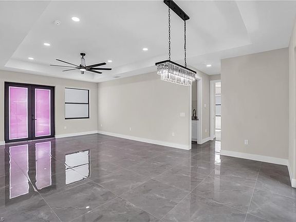 ****SELLER CONCESSIONS AND INTEREST RATE BUY-DOWN AVAILABLE!****PURPLE TINT ON FRONT DOOR IS REMOVEABLE *** Welcome home to the Bismark+ Model situated on a quarter-acre lot, in the most desirable and secure neighborhood of Lehigh Acres. This residence features 3 bedrooms, 2 bathrooms, and a 2-car garage. This model comes equipped with hurricane-impact windows, tray ceilings, and porcelain flooring throughout the entire home. The kitchen has a 9-foot island, with white quartz countertops, custom faucets, and stylish black and gold lighting fixtures. Additional highlights include sprinklers, an epoxied garage, patio, and front porch! The layout of this home is thoughtfully designed for hosting and entertaining, and the backyard provides ample room for a future pool, gatherings, or outdoor activities. While the images provided show a rendered model, rest assured that all materials used are of the same high quality found in all our exclusive builds. Don't miss the chance to call this exquisite new construction property your home.