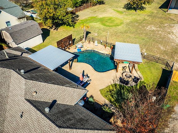 Your Own Backyard Paradise Awaits! Situated on a spacious 1.34-acre lot, this inviting 4-bedroom, 2-bath home offers the perfect blend of comfort, functionality, and outdoor living! Step inside to an open-concept layout where the kitchen, dining, and living areas flow together seamlessly. The kitchen features updated stainless steel appliances including a gas cooktop, abundant cabinetry, and a breakfast bar, ideal for casual meals or entertaining guests. The living area boasts a cozy fireplace with gas logs and a view overlooking the sparkling pool. The primary suite is thoughtfully separated from the secondary bedrooms, offering privacy and relaxation. It features a decorative ceiling treatment, a primary bath with dual vanities, a jetted tub, a separate shower, and a walk-in closet. The fourth bedroom was added within the garage, and the remaining garage area still provides room for storage and parking for one car. Step outside to your very own entertainer’s dream backyard! Enjoy a refreshing pool with tanning ledge, a bar area with TV hookup, and two pergolas for shaded relaxation. The outdoor kitchen makes hosting gatherings effortless, while the 40x50 workshop is perfect for hobbies, storage, or business use. There’s even a storage building transformed into a Man Cave for game days or downtime! The backyard is fully fenced, including a separate pool perimeter fence for added safety. Water heater was upgraded to a tankless gas model also. Don’t miss your chance to own this beautiful home with endless amenities — where every day feels like a vacation!