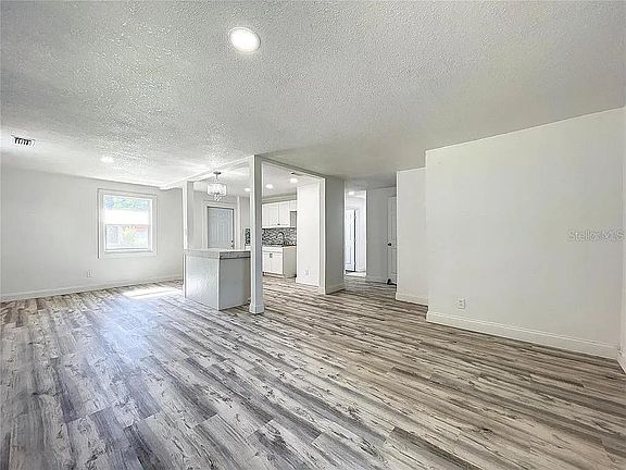 Welcome home to this beautifully renovated 3 bedroom, 2 bath bungalow situated on a spacious corner lot. Completely remodeled from top to bottom, this home blends modern finishes with effortless comfort and is truly move-in ready. Step inside to find sleek luxury vinyl plank flooring flowing seamlessly throughout the open-concept living space, perfect for entertaining. Large picture windows fill the home with natural light. The kitchen features stainless steel appliances and a center island with storage drawers. The split bedroom floor plan offers maximum privacy, with a generous primary suite that includes a fully remodeled luxury bathroom featuring matte tile accents. Two additional bedrooms share a beautifully updated guest bath, and a spacious indoor laundry room adds convenience for everyday living. Updates provide peace of mind, including a NEW ROOF in 2025, a new water heater in 2025, new A/C and windows in 2022, along with fresh interior and exterior paint, new fixtures, lighting, doors, trim, and landscaping. The home is also hurricane-ready, with plywood panels already cut to size and labeled for each window, and window screws installed and ready for easy storm preparation. The expansive corner lot offers plenty of room for outdoor entertaining, pets, and play!