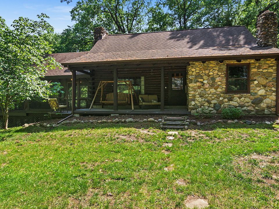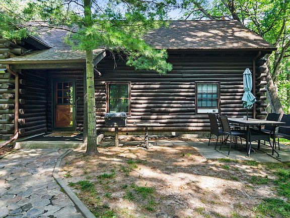Nestled within a tranquil 4 acre natural setting, this remarkable log cabin is a stunning fusion of rustic charm and modern elegance. Offering an array of luxurious features, including an updated kitchen, four spacious bedrooms with 2.5 baths, expansive closets, a pole barn, an additional parcel with lake access and ownership, plus a three-car garage, this property provides the perfect escape for those seeking a serene and comfortable lifestyle. Boasting a three-year-old Navien combo boiler and water heater, this log cabin is a testament to quality craftsmanship and thoughtful design. Enjoy your evenings in the screened in porch with new hot tub! Join us as we explore the exquisite details that make this log cabin a truly exceptional retreat.
