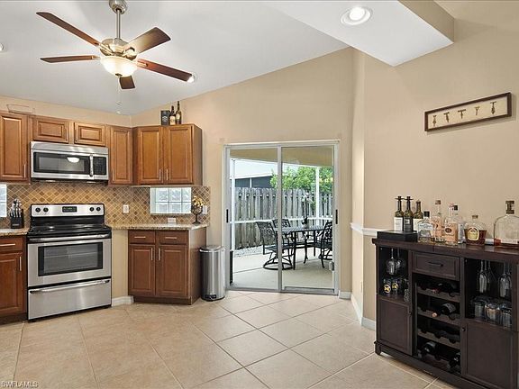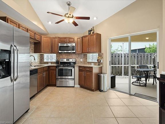 Relish the uncomplicated lifestyle in this immaculately maintained residence, tucked away in an enchanting cul-de-sac. The monthly dues take care of lawn maintenance and water usage, both indoors and out, so you'll never see a water bill! In 2018, the home received updates including the roof, air conditioning system with new ductwork, exterior paint, and shutters. Its prime location is just 5 miles from Olde Naples and the beach, making Queens Park a perfect locale. The interior boasts tiled flooring throughout and a split floor plan, providing an ideal layout for guests or family. Abundant windows allow natural light to pour in, and the vaulted ceilings add to the sense of space. The screened lanai leads to a gravel area that's great for pets or growing orchids, with potential as a dog run or a specialized plant area. This home sits on a brief cul-de-sac among distinctive homes, offering a departure from the typical neighborhood. The property is readily available for viewing.