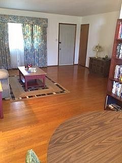 Home sits on a large corner private lot. Newer roof, newer heat and air and newer sewer line. Completely cleaned and painted inside including ceilings. Hardwood floors redone in LR, DR and hallway. Kitchen cabinets re-stained. Completely remodeled bathroom with large walk-in shower, handicapped accessible. Shower used only 4 times. All new window shades, dishwasher, stove/oven (with new burners)Carport to be pressure wash and West side of home to be re-stained. Great neighborhood, on bus line and close to shopping and schools. SQ FT is estimated.