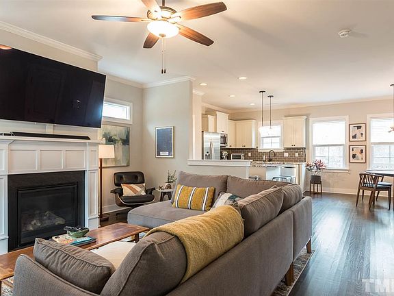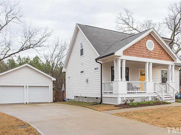 Charming bungalow in like new condition with open concept floor plan! .37 acre lot with fenced backyard and beautiful patio. First floor master bedroom and master bath with tiled shower and double vanities. Beautiful site-finished hardwoods throughout first floor. Great room with gas fireplace. Chef's kitchen w/granite counter tops, SS appliances including new Bosch dishwasher, & upgraded cabinets! Detached 2-car garage! This ideal location is situated just minutes to downtown Durham and Brier Creek.