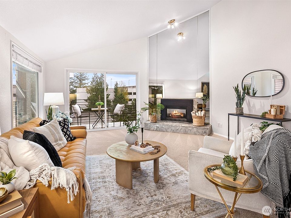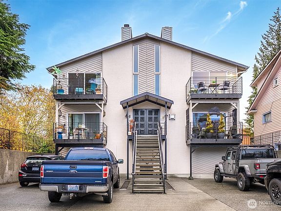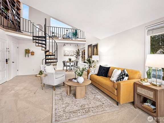 Moments from the Marina & downtown, this Rucker Hill condo offers convenience and style! Step inside to discover fresh paint & carpet throughout. You'll love the standout spiral staircase leading to the loft, w/ floor-to-ceiling bookcase and rolling ladder. The large living room centers around a striking mirrored fireplace & opens to the front balcony. The kitchen features a new stove and fridge! Down the hall, enjoy in-unit laundry & a bedroom with a nearby full bath w/new shower surround. The primary suite has access to the back deck & ensuite w/updated walk-in shower. The unit includes two dedicated outside tandem parking spaces, one dedicated garage, plus two private storage closets. Well maintained condo, roof is only a few yrs old!