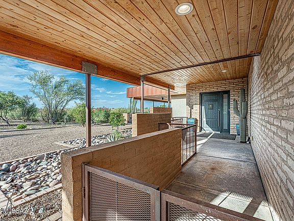 Southern Arizona's Iconic Contemporary Masterpiece. As the late great ESPN anchor Stuart Scott used to say, ''Cooler than the other side of the pillow''. A flawless fusion of bold architecture and desert beauty and yes, as cool as it gets! 360 unobstructed mountain views, polished concrete floors, tongue and groove pine slat ceilings (transitioning to the covered patios and eves), adobe brick walls, floor to ceiling windows and sliders, electronically controlled window shades, wired for Smart-home control, soapstone and quartzite countertops, gas and LED lighted fireplace, newer split HVAC systems, tankless water heaters, salt water pool. Additional options exist via, generously discounted, purchase of adjacent 3.3 acre parcel under separate title. The list goes on but I won't.