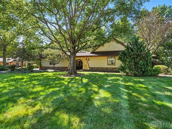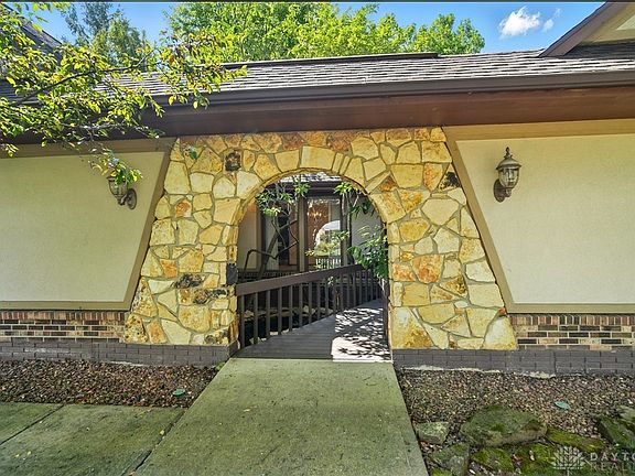 Remarkable one-owner home exuding timeless 1980s charm & unmatched character while offering almost 4800 sf of thoughtfully designed living space. Built by custom builder Earl Bach who thoughtfully designed each space along with the owners. 5 bedrooms, 4 full baths & a full finished walk-out basement, this solidly built home combines craftsmanship & warmth in every detail. The inviting stone arched entry welcomes you across a bridge and pond, setting the tone for the unique features inside. This entry is dreamy and breathtaking. The main level showcases a bright kitchen with access to the expansive deck stretching the length of the home, perfect for morning coffee or evenings under the stars w/ additional access from 2 bedrooms. The open foyer is so inviting & the large living room has floor to ceiling windows. Also on the main level is the dining room, breakfast nook, laundry room, 1st floor primary suite w/ an en-suite bath & bdrm 2 w/ a full bath across the hall. The open spiral staircase takes you to the lower level where you’ll find a sunken sitting area nested right in front of the wood burning fireplace. The lower level is made for entertaining & hobbies w/ 5th bdrm, full bath, wet bar, billiards room, exercise space & a dedicated craft/hobby room. Upstairs 2 bedrooms feature walk-in closets, private decks & a shared full bath + loft style living area—an ideal retreat for kids or guests. A sprawling wooded lot with mature trees provides beauty & privacy, while the large deck offers a serene backdrop for gatherings. Additional highlights: ample storage & tucked on a quiet street at the back of the development w/ little traffic. With its thoughtful design, quality construction & captivating setting, this rare gem is ready for its next chapter. It's a true original filled w/ character, heart & opportunity! Great location w/ easy access to I-675, The Greene, Fairfield Rd, grocery, restaurants, shopping & many parks. Also close to WPAFB for our military families.