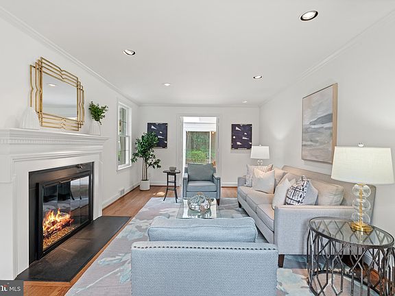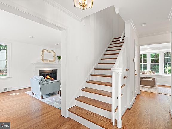 Classic Elegance in the Heart of Rollingwood. This timeless center hall Colonial in coveted Rollingwood seamlessly blends traditional charm with modern updates and generous proportions. Set on an expansive, beautifully landscaped lot with a classic slate roof, the home features spacious rooms, exceptional natural light, freshly painted interiors, and refinished solid hardwood floors. A gracious foyer opens to the formal dining room on the right, which flows into an updated kitchen equipped with a new LG refrigerator and dishwasher, along with a high-end Thermador gas cooktop and double wall ovens. A rear hall leads to a private office with an adjoining powder room—also accessible directly from the front entry. To the left, the large living room offers recessed lighting, custom built-ins, and a gas fireplace, and opens to a sunroom with a dramatic skylight and serene views of the brick patio and expansive backyard. Upstairs, three generously sized bedrooms with hardwood floors provide comfort and style. The primary suite features two closets and an en-suite bath, while a classic hall bath serves the secondary bedrooms. A wall of built-in storage enhances the upper hallway. The finished attic offers a spacious fourth bedroom with a cozy sitting nook, walk-in closet, and abundant storage. The lower level includes a spacious recreation room with a fireplace, a second office with built-ins, a full bath, and a large laundry room. Additional highlights include a two-car garage with a new concrete floor and convenient pull-down stairs to a lofted storage area. Walkable to Brookville market and ideally located just moments from Rock Creek Park, neighborhood schools, downtown Bethesda, and the DC line, this classic Chevy Chase residence offers timeless appeal and everyday livability in one of the area’s most sought-after communities.