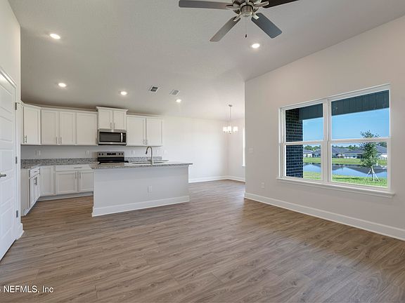 Huge Price Improvement - Plus Save Thousands at closing with use of approved lender! Secure your dream home with just a $1,000 deposit! This 1512 sq ft home presents a 3-bed/2-bath layout with a split floor plan and impressive 10' ceilings. The modern kitchen features an open concept with an island, granite countertops, and cabinets adorned with crown molding, along with a spacious pantry for storage. The Primary Suite offers a walk-in closet, dual vanities with quartz countertops, and a lavish 5' tiled walk-in shower. Upgraded luxury vinyl flooring extends throughout, with plush carpeting limited to the bedrooms. This resort-style community is zoned for A-rated Clay County schools and offers a prime location just minutes from Fleming Island's shopping, dining, and services, with NAS JAX only 25 minutes away. Surrounded by conservation areas, parks, and golf courses, enjoy activities like canoeing, and horseback riding. The community features a water park, lap pool, clubhouse, & more